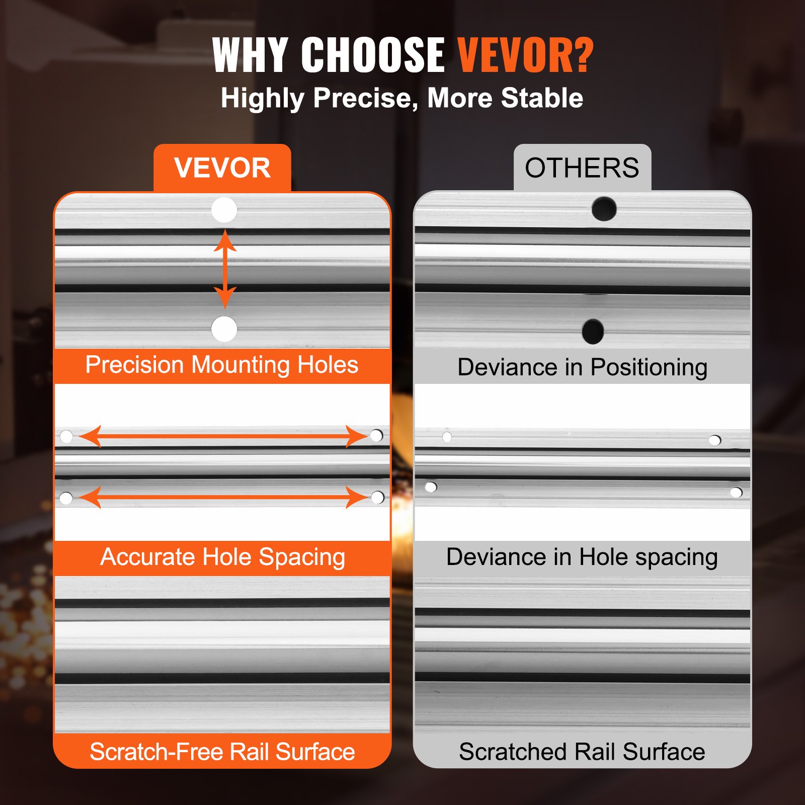 Zato su ove linearne vodilice VEVOR idealne za vaše CNC glodalice. Izrađene od ugljičnog čelika pružaju dugotrajnost i preciznost. SBR16 vodilice imaju bazu duljine 1000 mm koja omogućuje glatko i precizno pomicanje, čineći vaše projekte jednostavnijima i učinkovitijima. Svaki blok podnosi dinamičko opterećenje do 774 N, što ih čini savršenima za rad s velikim opterećenjima. Možete se pouzdati da će ove vodilice poduprijeti vaš alat i osigurati stabilno vođenje. Bilo da ste hobi majstor ili profesionalac, vodilice će zadovoljiti vaše potrebe. Jednostavne su za ugradnju i savršeno rade s priloženim klizačima. Nadogradite svoj sustav glodanja ovim pouzdanim vodilicama.