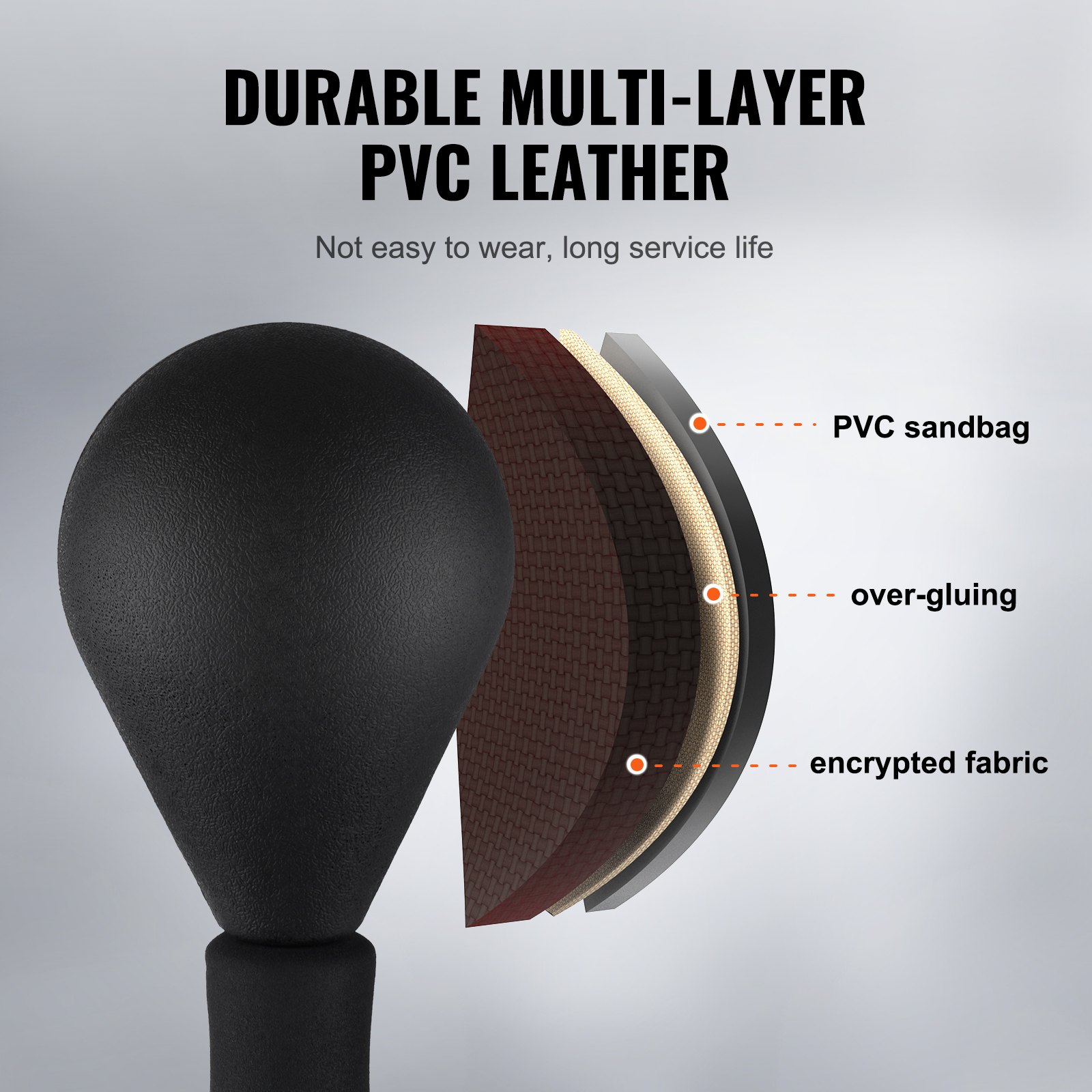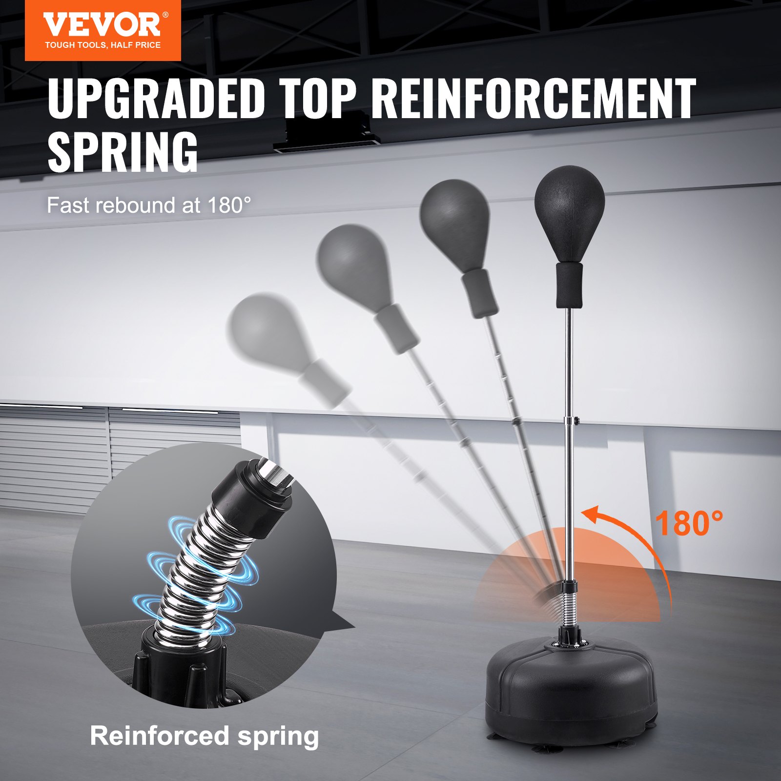 Vreća je dizajnirana za dugotrajnu upotrebu zahvaljujući robusnim materijalima – karbonskom čeliku i HDPE plastici. Bazu možete napuniti vodom ili pijeskom kako bi ostala stabilna i pri najjačim udarcima i kickovima, dok sustav opruge za brzi povrat osigurava da se odmah vrati u početni položaj. Tako dobivate postojane performanse i pouzdanu opremu za svakodnevne treninge.